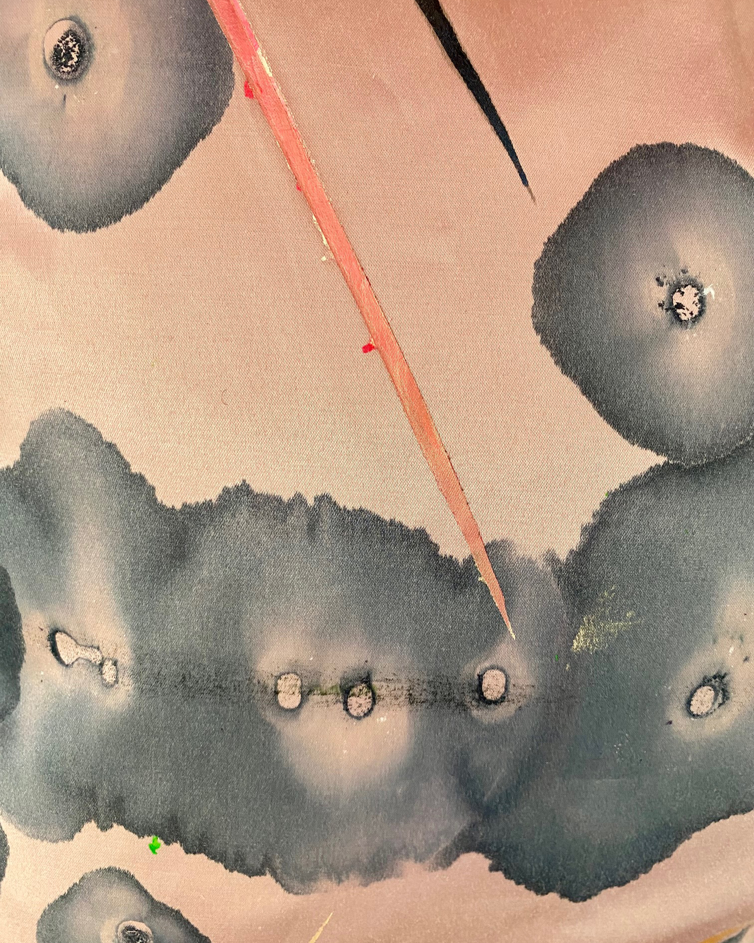 Vintage Minz Sateen (cotton satin) painted with water-resistant fabric paint.